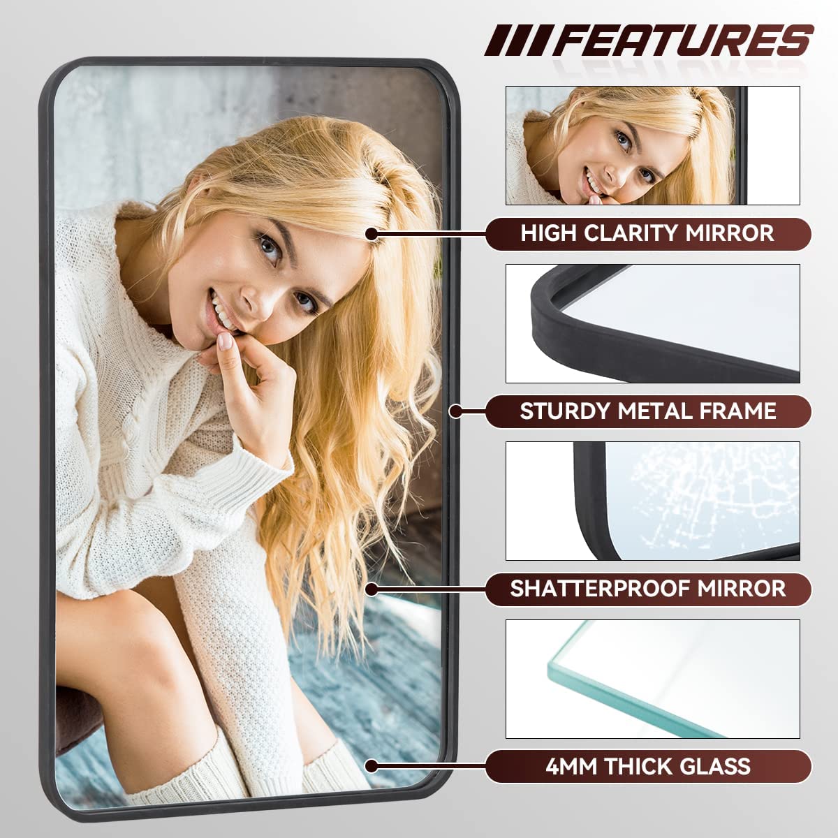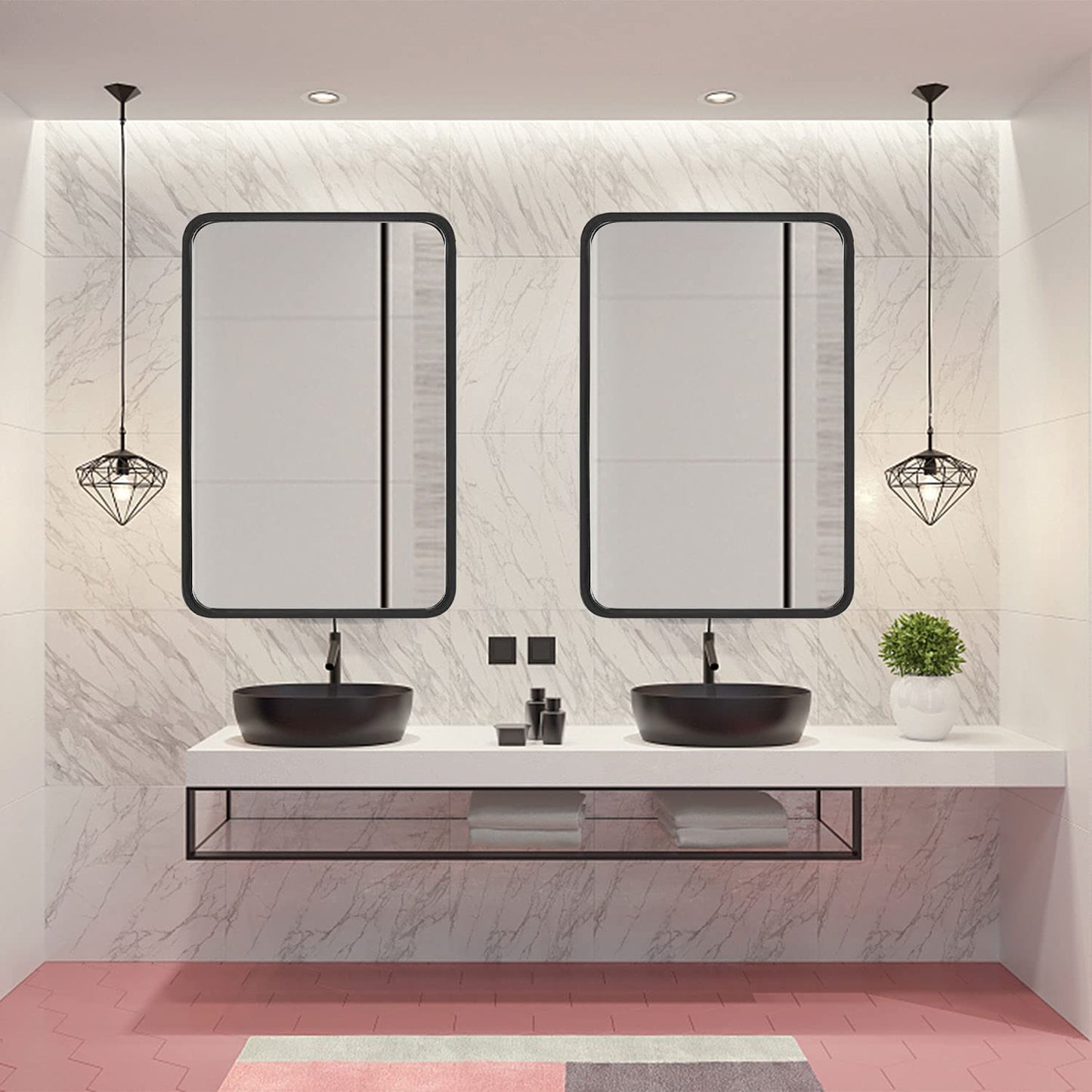 KOSSMAI® rounded rectangular wall mirror is designed with a style for fashion and modern industrial. The frame is made of brushed black metal with an angled design to protect the mirror. The black mirror is anti-stripping, anti-cracking and it is safer and more premium than traditional recessed frames. With premium glass, the mirror is anti-distortion, which is perfect in reflection. The well-designed packaging ensures that the rounded corner mirror is delivered safely. It can be used as a vanity mirror or decorative mirror to decorate your room where you can give yourself the last look through the mirror before going out. And with a modern industrial design, it is also suitable in various hotel rooms.