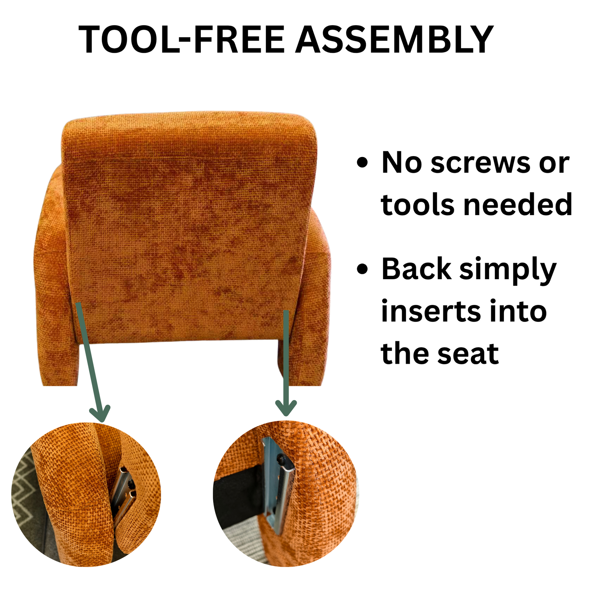 The wide seat, supportive armrests, and ergonomic design make it ideal for reading, relaxing, or entertaining guests. Best of all, assembly is effortless—just insert the backrest into the seat. No screws, no tools, no hassle.